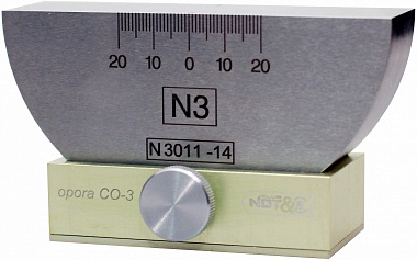 Подставка OPORA CO-3 предназначена для жесткой фиксации образца СО-3 на рабочем месте, позволяя выполнять определение стрелы преобразователя, задержки в призме и запаса чувствительности максимально удобно.