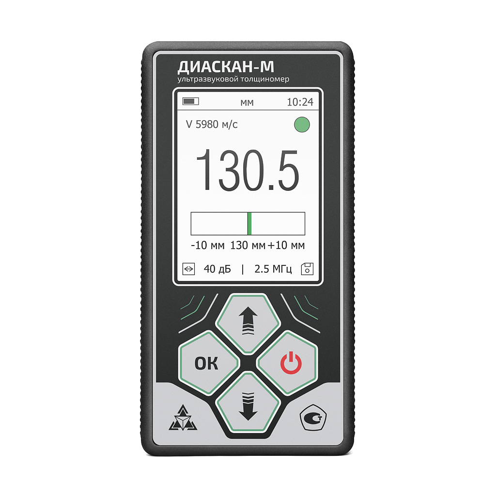 Для ультразвукового толщиномера Диаскан-М доступны следующие режимы: «СТАНДАРТ», «ПРОФ», «СКОРОСТЬ УЗ», «Б-СКАН», «ЭТАЛОН», «ДОПУСК»: