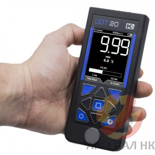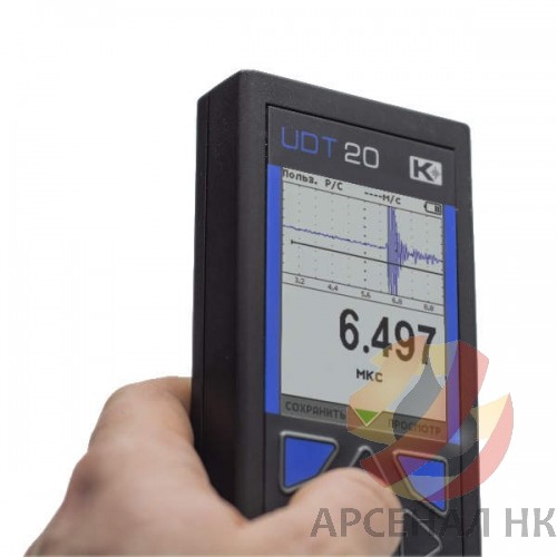 Высокоточный универсальный ультразвуковой толщиномер с А- и В- сканами. Наличие реального сигнала на экране позволяет исключить типичные ошибки при измерении толщины с помощью УЗК и повысить точность измерения.