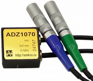 ADZ10xx | Габаритные размеры (ШхДхВ) 20 х 20 х 8,8 мм; Номинальная частота 10 МГц; Размер пьезоэлемента 5х5 мм; Размер контактной поверхности 19х20 мм; Тип излучаемых волн поперечные; Материал призмы оргстекло; Корпус алюминий с гальваническим покрытием; Разъем подключения 2 х Lemo00. | ![]() |