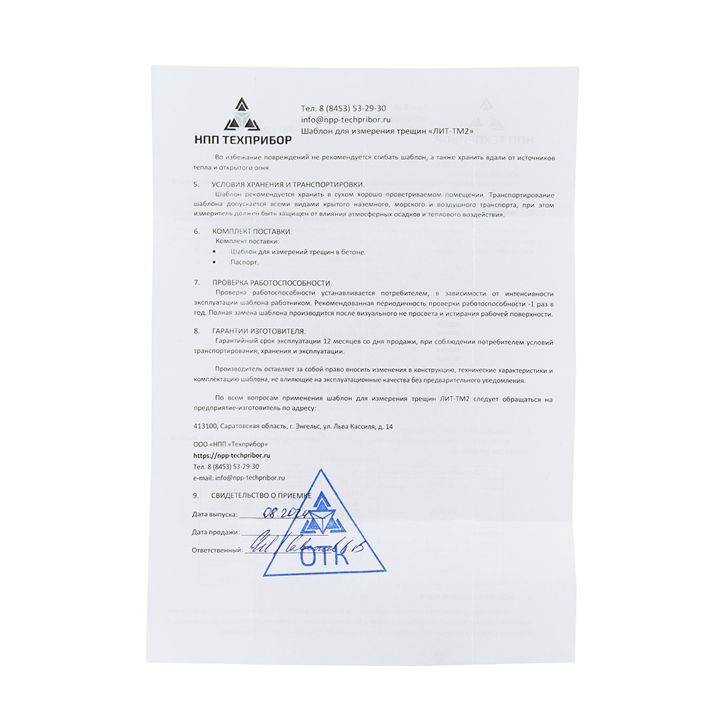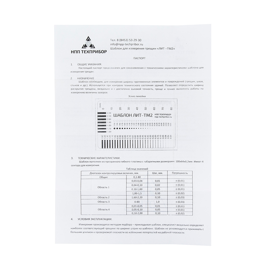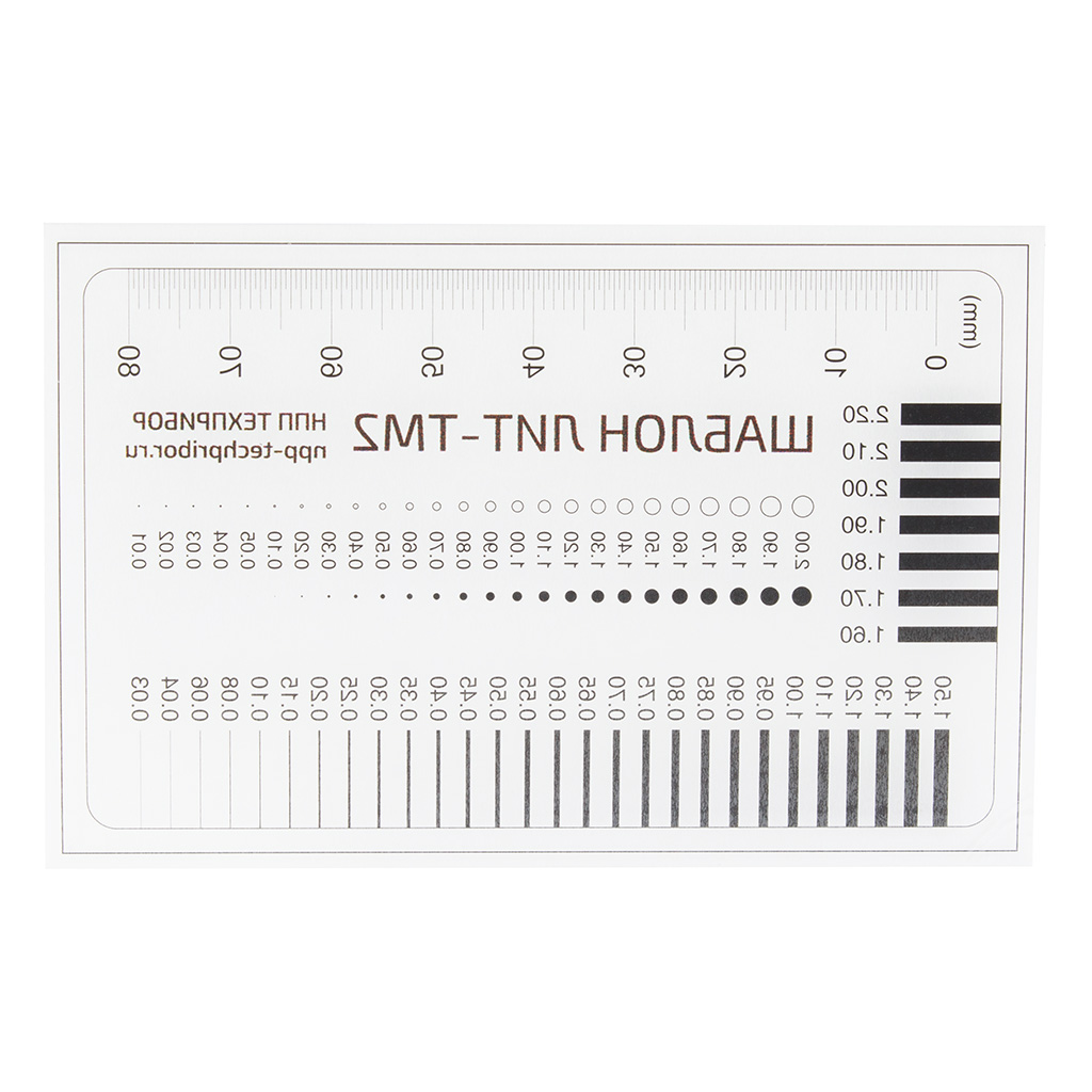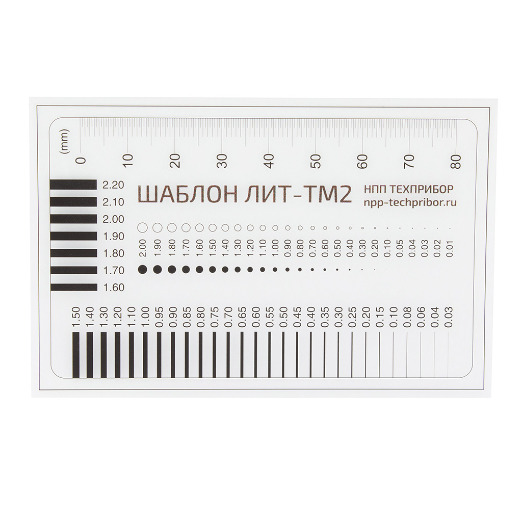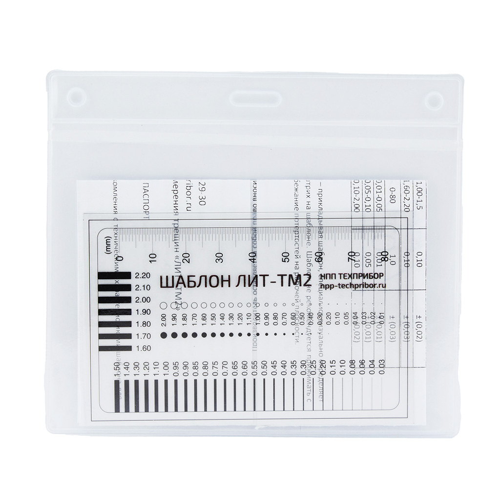 Шаблон необходим, для измерения ширины протяженных элементов и повреждений (трещин, швов, стыков и др.). Используется при контроле технического состояния зданий. Позволяет определить ширину раскрытия трещины, визуально и с достаточно высокой точность, проще и точнее выполнять работы по измерению величины зазоров.