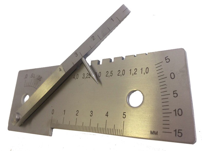 Универсальный шаблон сварщика УШС-3 предназначен для контроля элементов разделки под сварной шов, электродов и элементов сварного соединения. Позволяет проводить контроль глубины раковин, забоин, превышения кромок, глубины разделки стыка до корневого слоя, высоту усиления шва, контроль зазора, притупления шва, ширины сварного шва, углов скоса кромок, а также диаметров электродов.