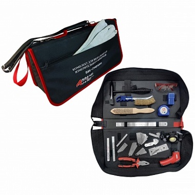 Комплект поставляется в эргономичной и прочной сумке, который обеспечивает надёжное хранение и транспортировку инструментов благодаря своей влаго- и износостойкости.