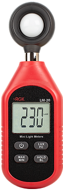 При включении режима HOLD текущий результат удерживается на экране цифрового люксметра RGK LM-20, что позволяет удобно и точно занести его в журнал или зафиксировать иным образом. Функция отображения пиковых значений упрощает работу и помогает быстро определить, достигается необходимый уровень освещенности или нет. Прибор автоматически оповещает о выходе за пределы измерений.