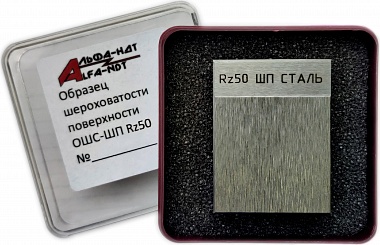 Образец шероховатости ОШС-ШП Rz50 АЛЬФА-НДТ представляет собой 1 пластину, полученных плоским шлифованием с номинальными значениями параметра Rz50.