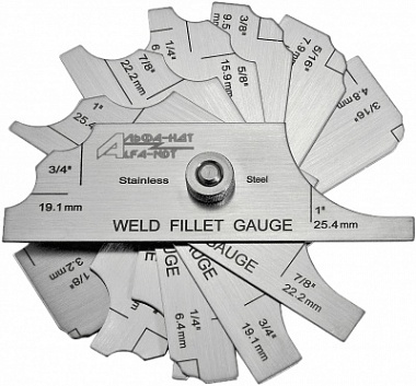 Шаблон катетов швов MG-11 является импортным аналогом отечественного универсального шаблона сварщика УШС-2 с более широким диапазоном контроля катетов и возможностью определения выпуклости и вогнутости швов. Второй аналог измерителя — шаблон сварщика WG-5 , позволяющий контролировать катеты с целыми значениями мм.