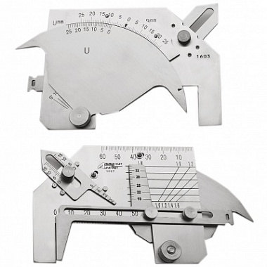 На шаблон нанесена номограмма, позволяющая определять коэффициент расширения стыкового шва арматуры или прутка (1,0-1,6 мм). Также измеритель подходит для использования в качестве линейки (до 60 мм) и для измерения угла разделки кромок по шкале 0° - 70°.