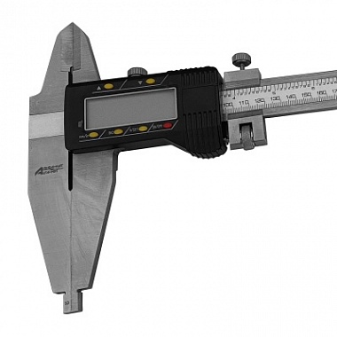 Штангенциркуль состоит из штанги с измерительной шкалой, губок для внутренних и внешних измерений и подвижной рамки, на которую установлен блок с цифровым электронным табло.