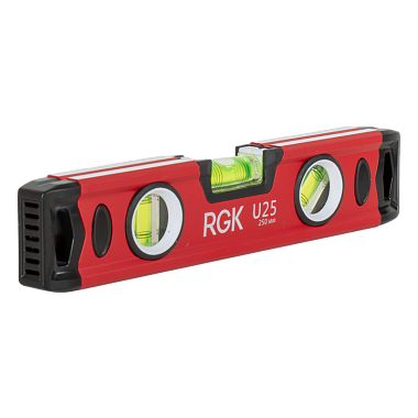 Уровень RGK U25 не займет много места и будет храниться в ящике с инструментами, так как его длина всего 25 см. В то же время это не делает его менее эффективным: он отлично подходит для решения поставленных задач.
