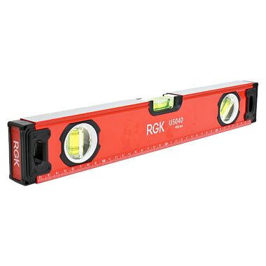Строительный уровень RGK U5040 длиной 40 сантиметров оснащен двумя магнитами на противоположных сторонах для крепления уровня на металлической поверхности, чтобы освободить руки при проведении разметки.