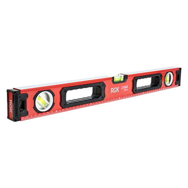 Строительный уровень RGK U5060 длиной 60 сантиметров оснащен двумя магнитами на противоположных сторонах для крепления уровня на металлической поверхности, чтобы освободить руки при проведении разметки.