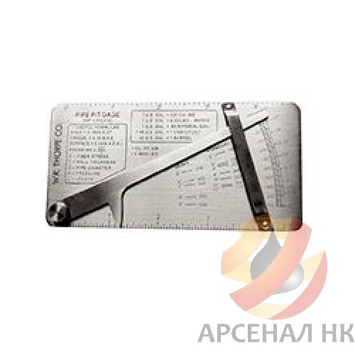 | Шаблон WG10 для измерения ямок труб Шаблон состоит из: основной пластины с измерительной шкалой в дюймах с формулами и таблицами, подвижного индикатора с острием. |