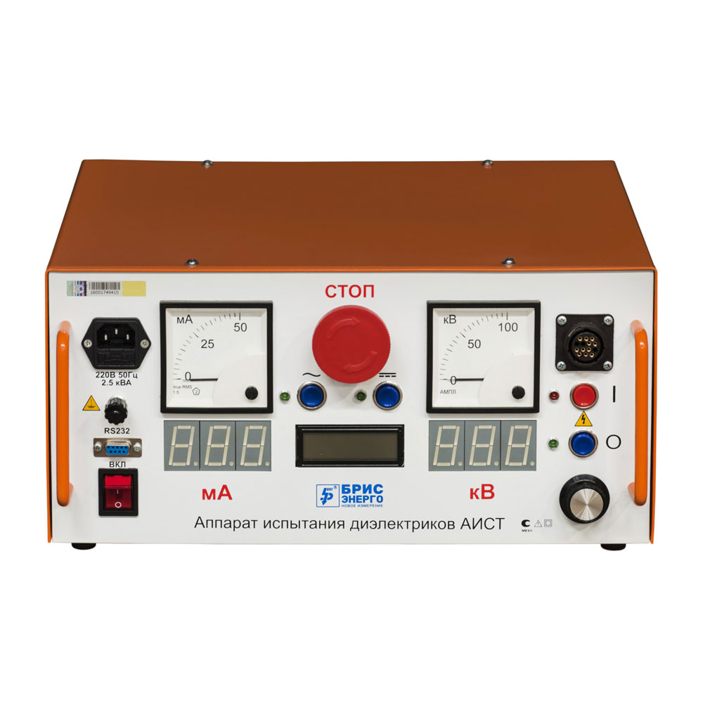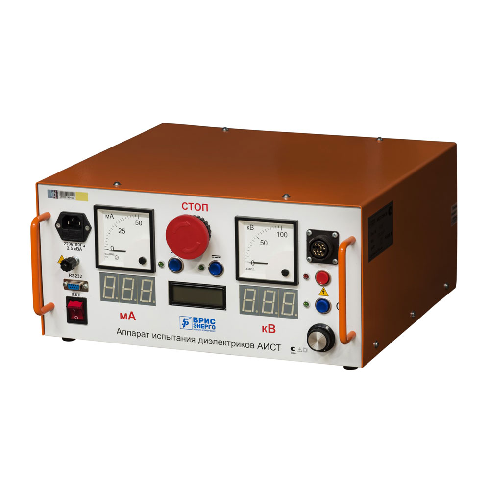 Высоковольтная испытательная установка "Аппарат испытания диэлектриков АИСТ 50/70" предназначена для испытания электрооборудования, электрической прочности изоляции силовых кабельных линий и твердых диэлектриков высоким напряжением переменного тока промышленной частоты до 50 кВ и постоянного тока до 70 кВ.