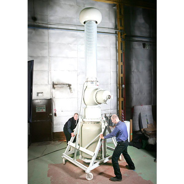 Установки позволяют проводить испытания в помещениях ограниченной площади и высоты потолков. Высоковольтный элегазовый блок легко перемещается по испытательному полю стенда, механизм изменения угла наклона блока позволяет оперативно адаптировать установку к высоте потолка.