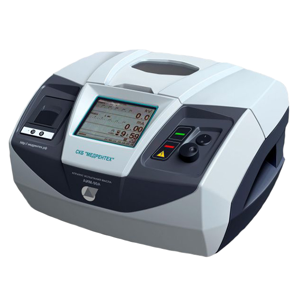АИМ -90А имеет современный дизайн и новые технические решения, которые позволяют проводить испытания полностью в автоматическом режиме, это существенно сокращает трудозатраты оператора и отменяет необходимость находится у аппарата в течение всего цикла испытаний. АИМ -90А самостоятельно поднимает высокое напряжение до момента пробоя диэлектрика, проводит перемешивание, отсчитывает временные интервалы между подъемами напряжения, рассчитывает среднее арифметическое значение пробивного напряжения, среднюю квадратическую ошибку и коэффициент вариации. Используя меню аппарата, оператор имеет возможность изменить количество циклов испытаний, время интервалов, режим перемешивания и т.д.